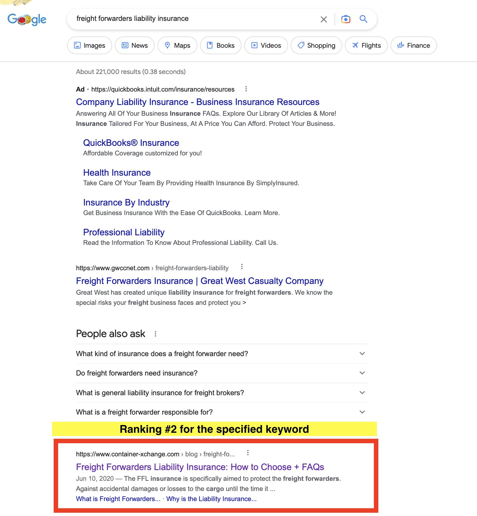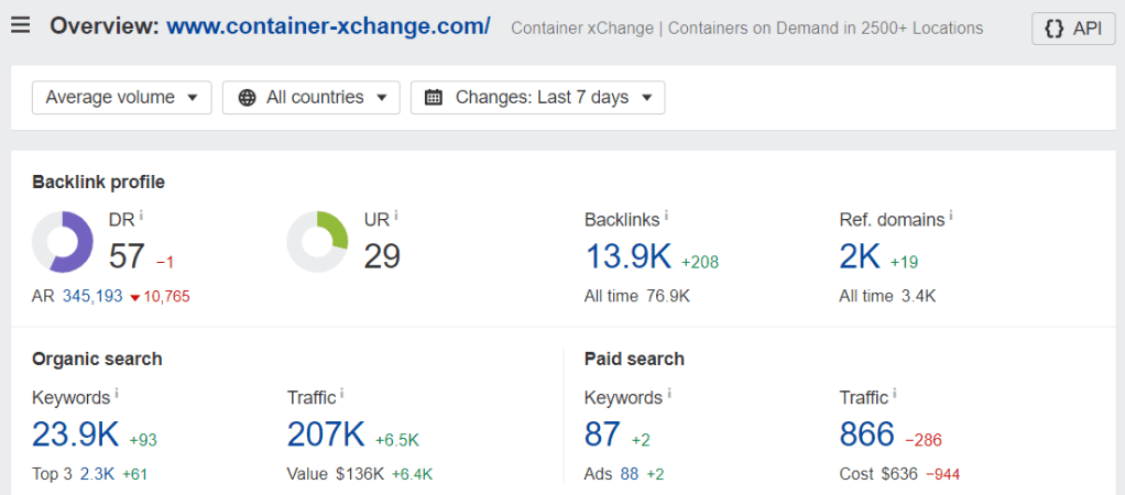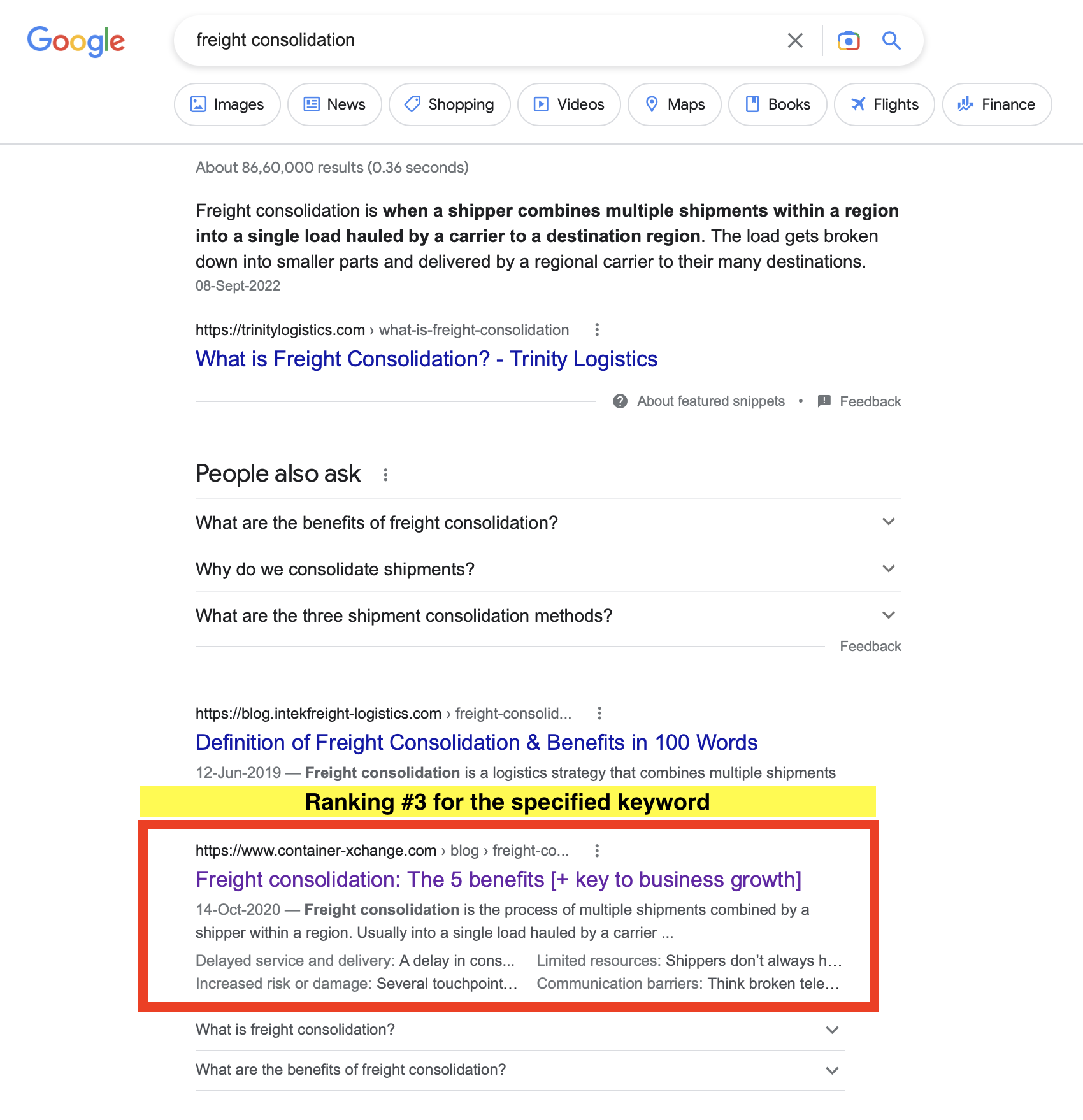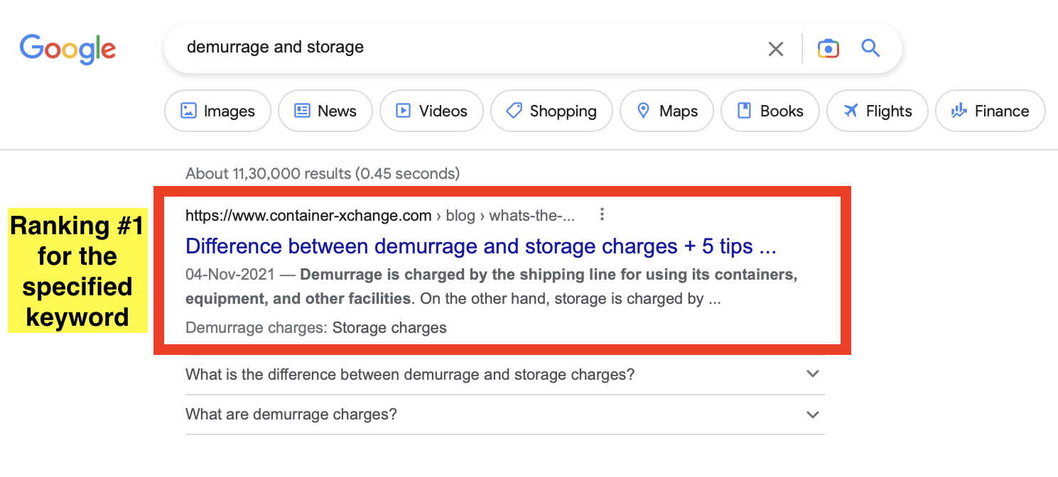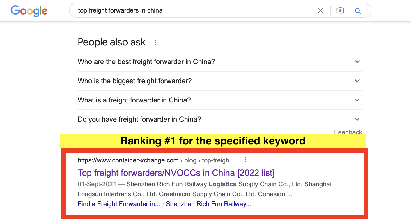 Over the course of 3 years (January 2020 – December 2022), she wrote 100+ content pieces and 500+ company profiles for them. Container xChange’s monthly organic search traffic grew to over 200K with 2.0K referring domains, 13,900+ backlinks, and an organic traffic value of over $135K — with 25+ articles ranking on Google as featured snippets or among Top 3 on SERP.