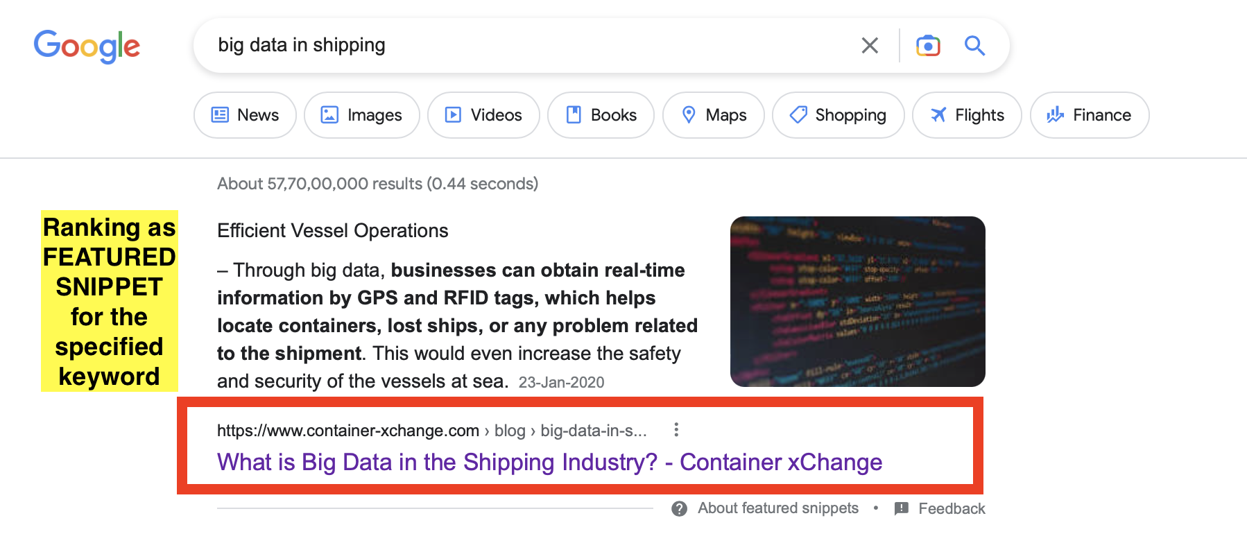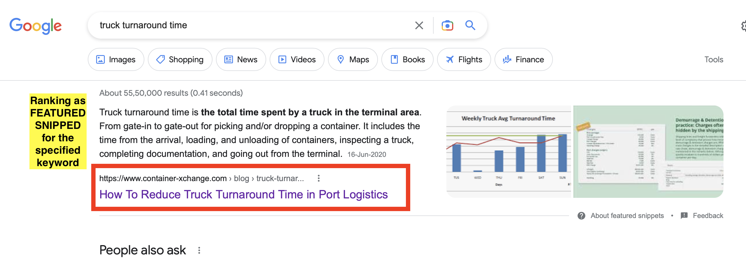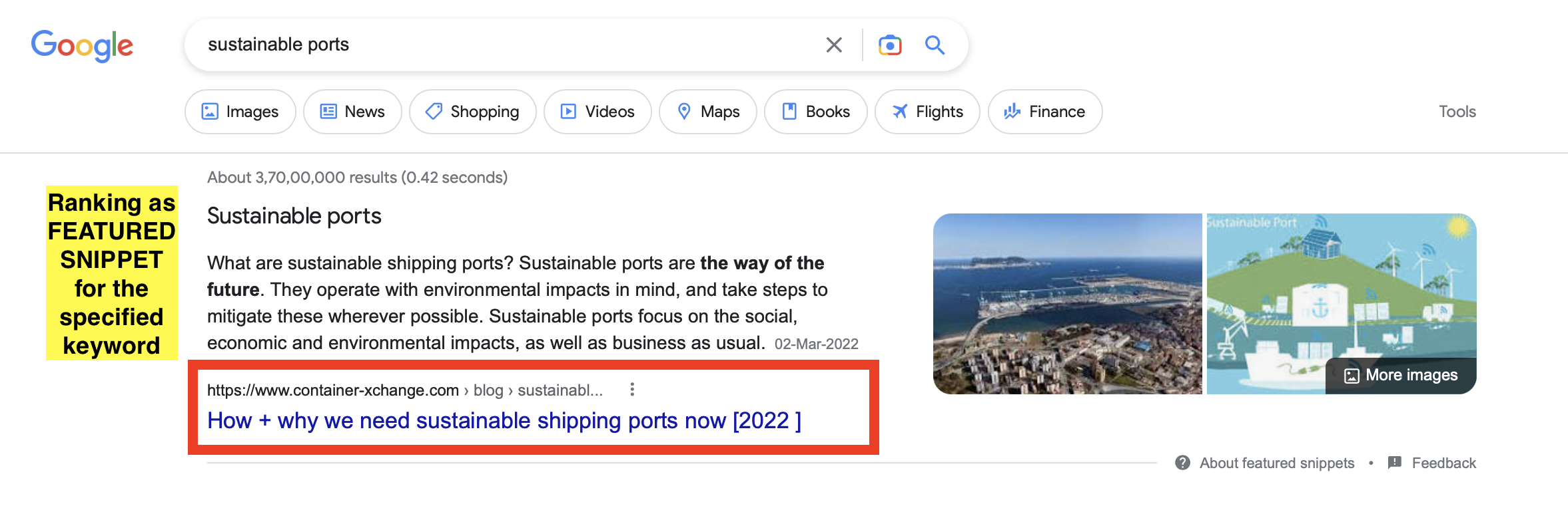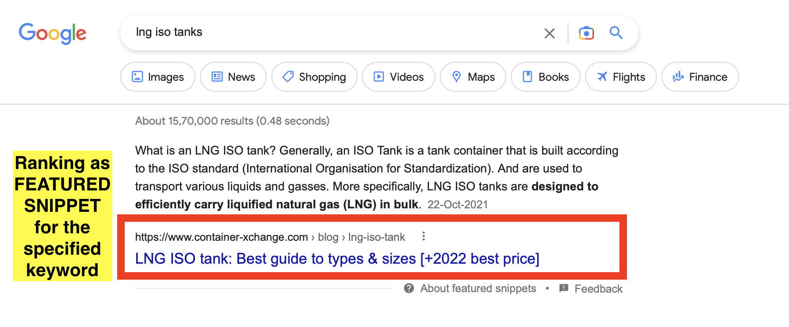 Over the course of 3 years (January 2020 – December 2022), she wrote 100+ content pieces and 500+ company profiles for them. Container xChange’s monthly organic search traffic grew to over 200K with 2.0K referring domains, 13,900+ backlinks, and an organic traffic value of over $135K — with 25+ articles ranking on Google as featured snippets or among Top 3 on SERP.