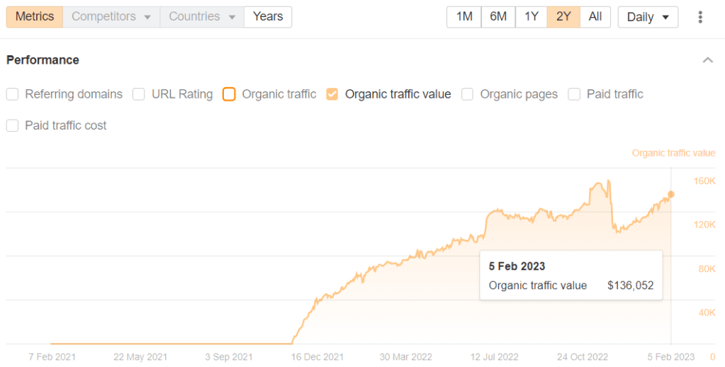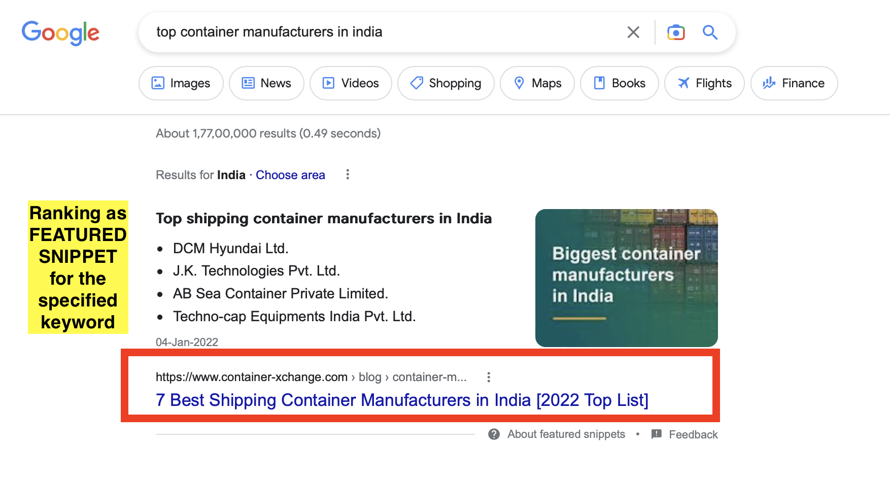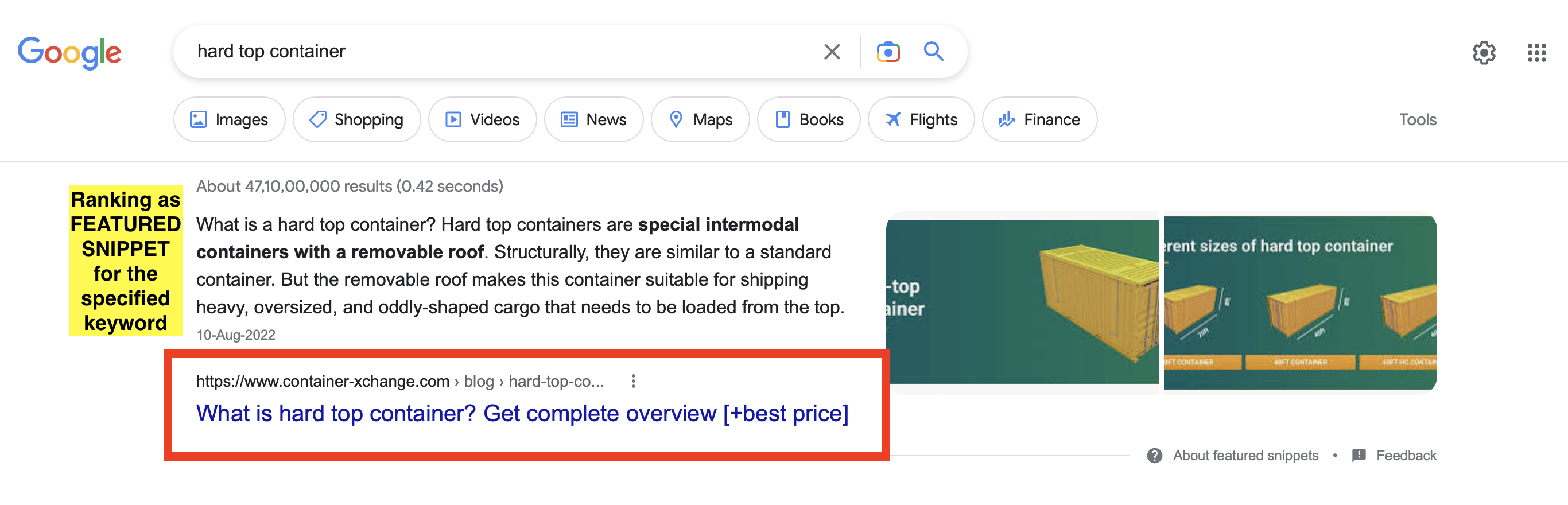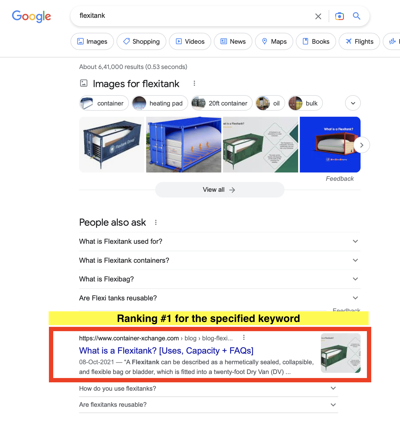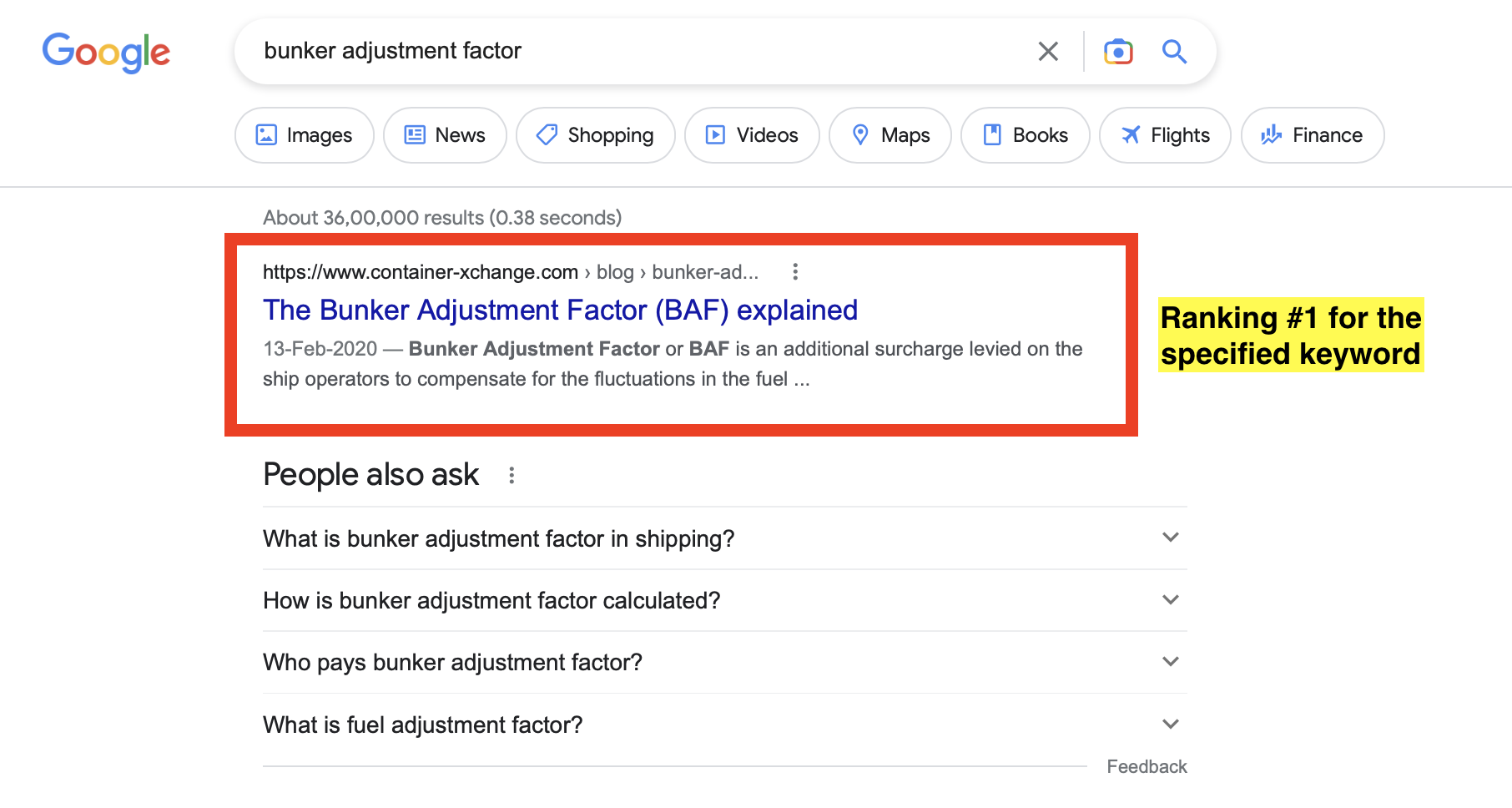 Over the course of 3 years (January 2020 – December 2022), she wrote 100+ content pieces and 500+ company profiles for them. Container xChange’s monthly organic search traffic grew to over 200K with 2.0K referring domains, 13,900+ backlinks, and an organic traffic value of over $135K — with 25+ articles ranking on Google as featured snippets or among Top 3 on SERP.